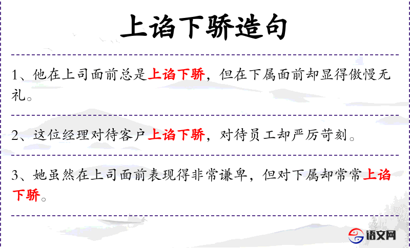 1. 【上谄下骄】 - 谄:谄媚。对上级谄媚,对下级骄傲。