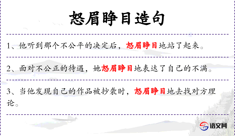 句子:“警察看到有人违法,怒眉睁目地走上前去制止。”