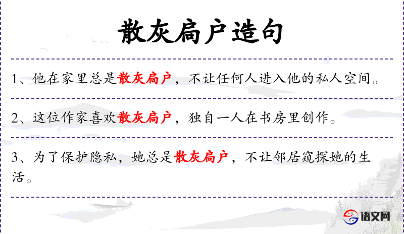 - 宾语:喜欢散灰扃户,不愿与人交流