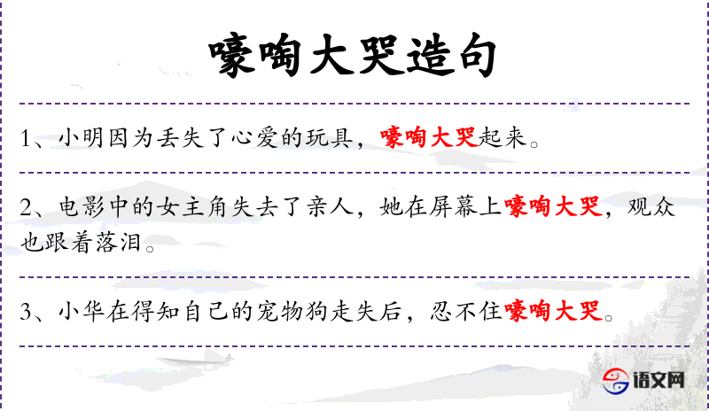 - 嚎啕大哭:大声哭泣,表达极度痛苦或悲伤