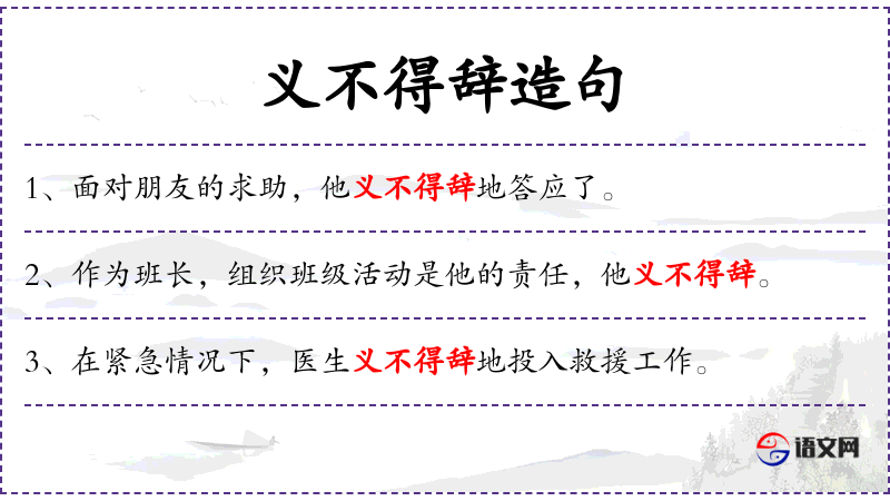 - 义不得辞:表示有义务或责任去做某事,不能推辞。