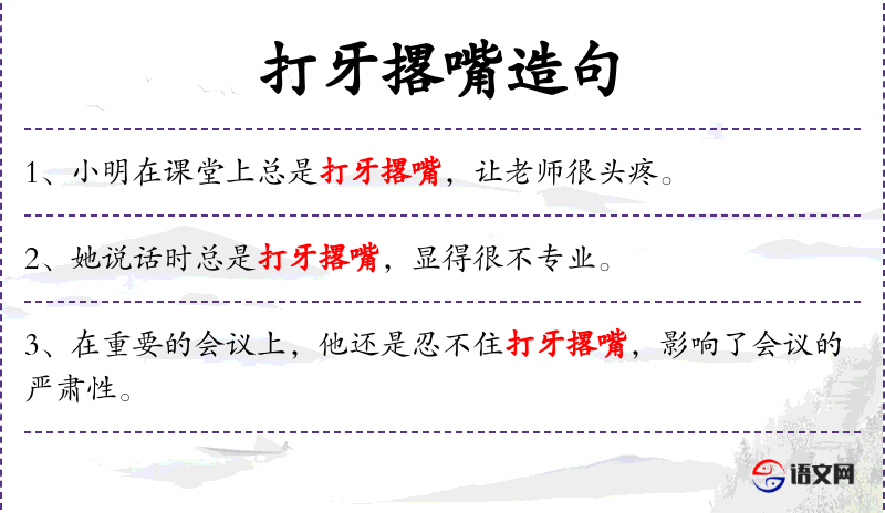 - 文化背景:“打牙撂嘴”是一个具有特定文化内涵的成语,可能不为非中文母语者所熟知。