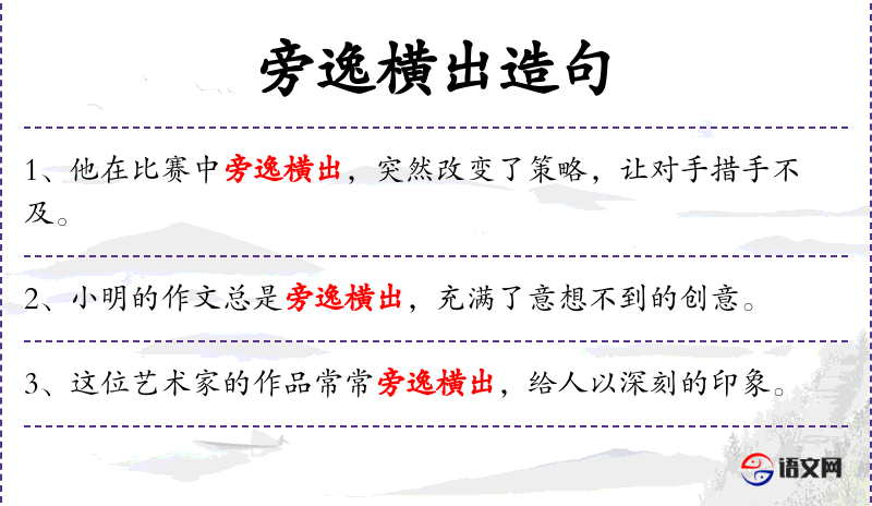 - 旁逸横出:成语,形容作品风格独特,不拘一格。