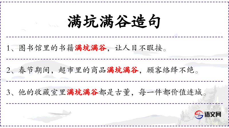 4. 【满坑满谷】 - 充满了谷,充满了坑。形容多得很,到处都是。