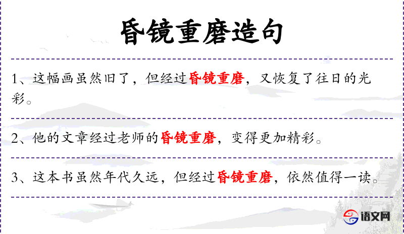 - 昏镜重磨:成语,比喻经过长时间的磨练或考验。