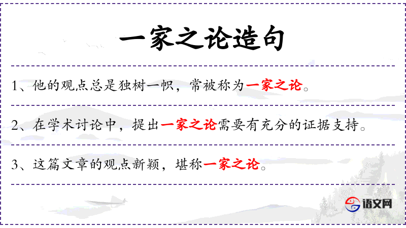 1. 【一家之论】 - 指有独特见解自成体系的论著。