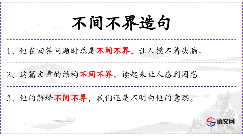 1. 【不间不界】 - 比喻左右为难,不好处理。也形容样子别扭。同“不尴不尬”。