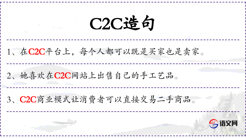 1. 【C2C】 指电子商务中消费者对消费者的交易方式。