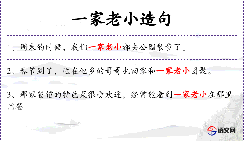 - 一家老小:指一个家庭的成员,包括老人和小孩。