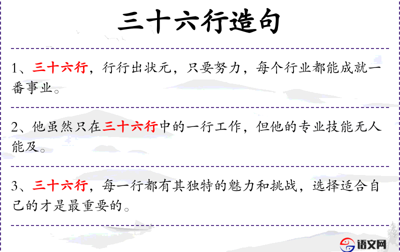 - 三十六行:指各行各业,源自**古代对行业的分类。