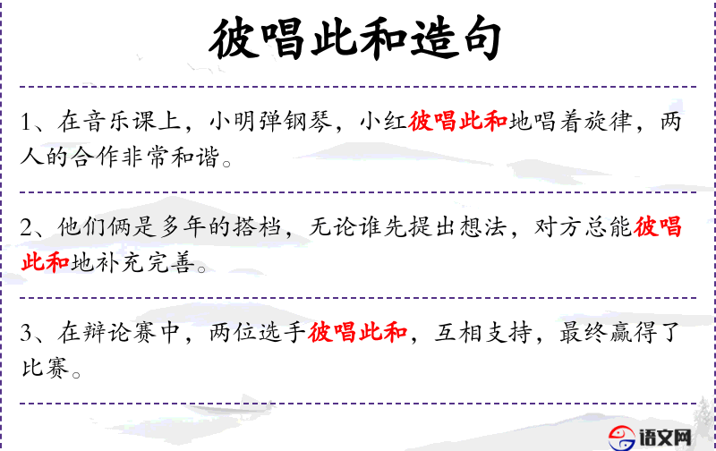 - 彼唱此和:成语,形容双方互相配合,共同完成某事。
