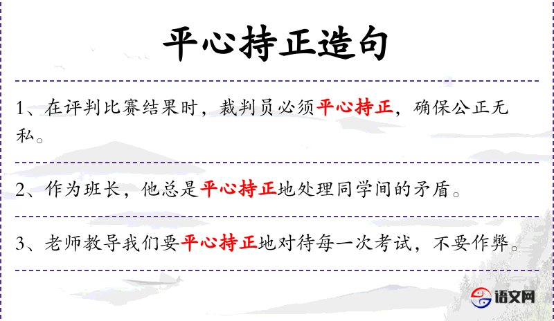 句子:“在处理班级事务时,班主任总是要求我们平心持正,不偏不倚。”