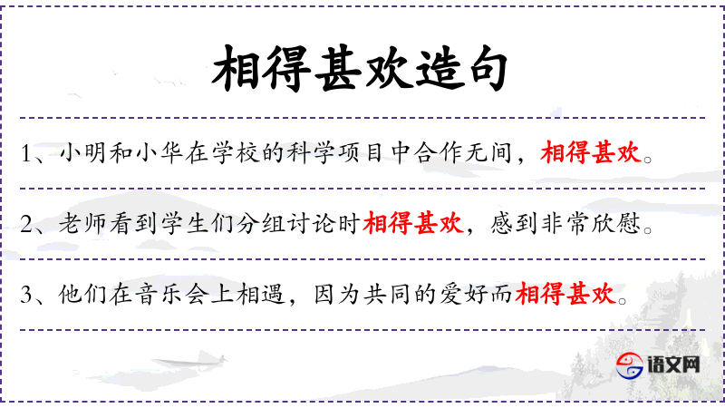 5. 【相得甚欢】 - 得:投合。形容双方相处融洽,非常快乐。