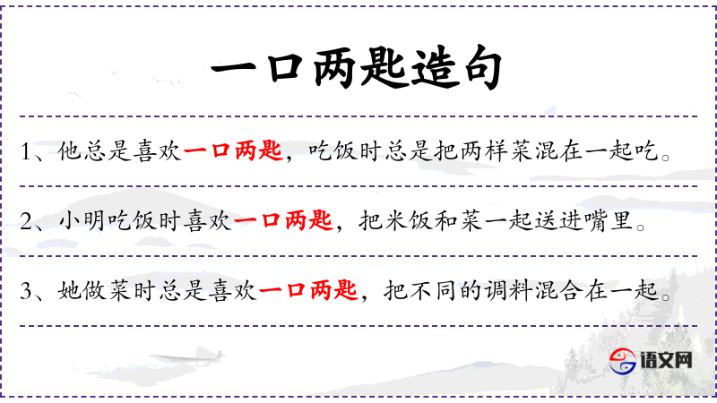 - 混合:动词,表示将不同物品或成分结合在一起。