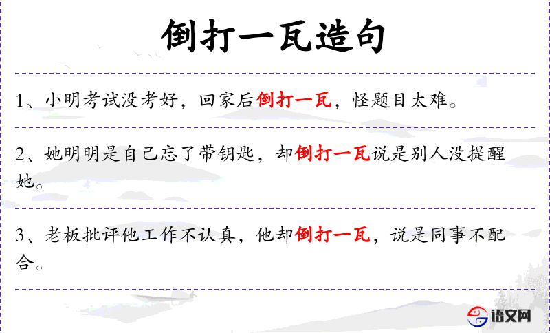 句子:“小华考试没及格,却倒打一瓦,说是试卷出得太偏。”