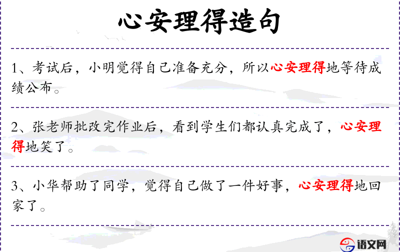 - 在帮助同学之后,小华觉得自己做了一件好事,心安理得地回家了。