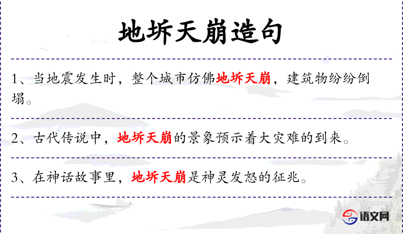 - 地坼天崩:指地震和天灾,比喻巨大的灾难或变动。