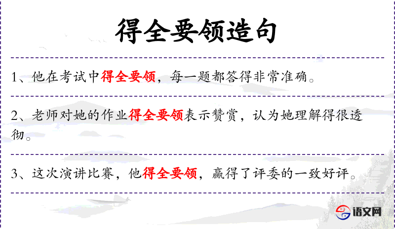 - 得全要领:成语,意思是完全掌握了要点或精髓。