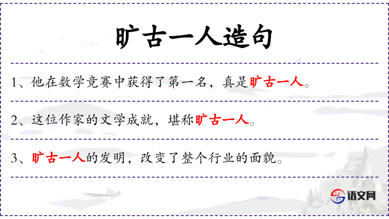 - 旷古一人:意为自古以来独一无二的人,形容其贡献的非凡和独特。