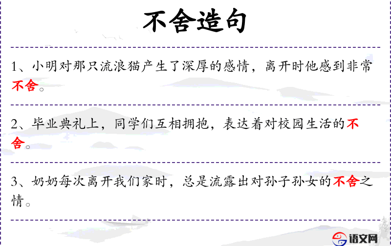 1. 【不舍】 亦作"不舍"; 不停止; 不放弃;不忍离开; 不饶恕。