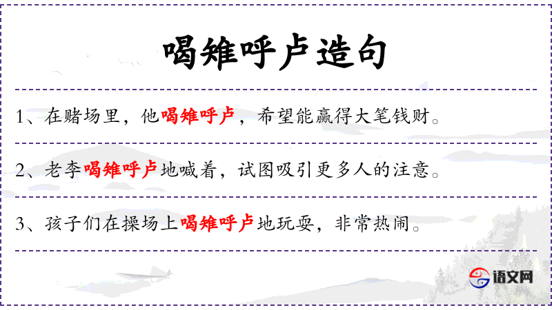 - 英文:句子直接翻译了原句的意思,保留了“喝雉呼卢”这个可能的特定术语。