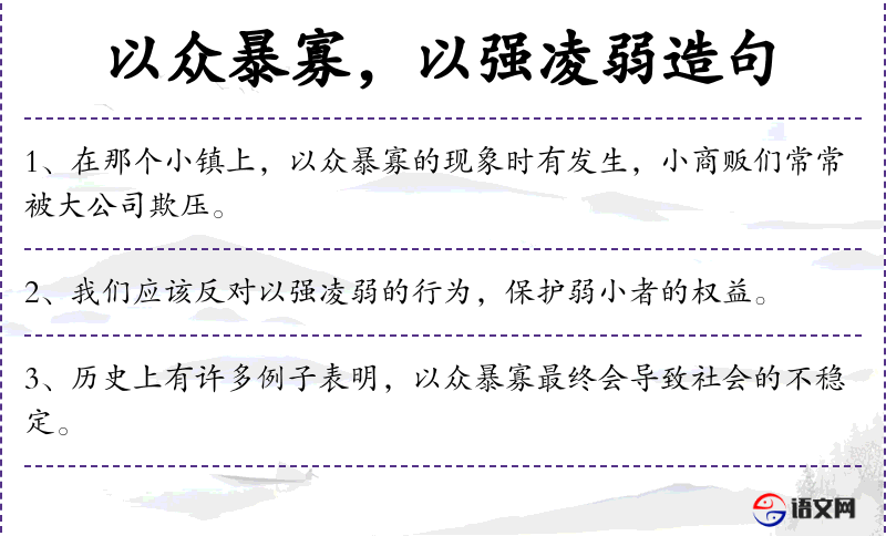 - 以强凌弱:指强者欺负弱者,是一个成语。
