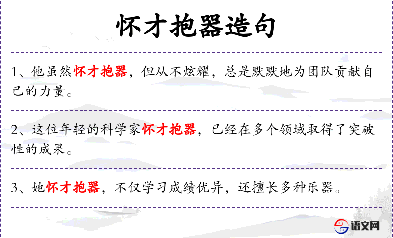 - 使用“怀才抱器”这样的成语增加了句子的文雅和深度。