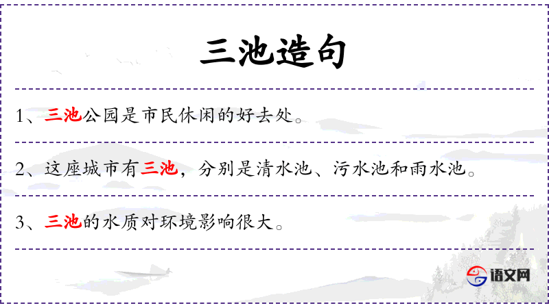 2. 【景色】 - 景致~迷人ㄧ日出的时候~特别美丽。