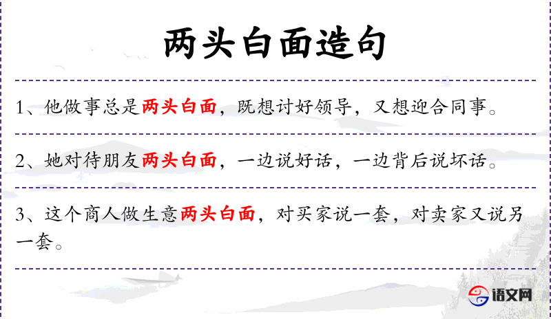 句子:“这个政客在选民和党内两头白面,两面讨好,结果两面都不讨好。”
