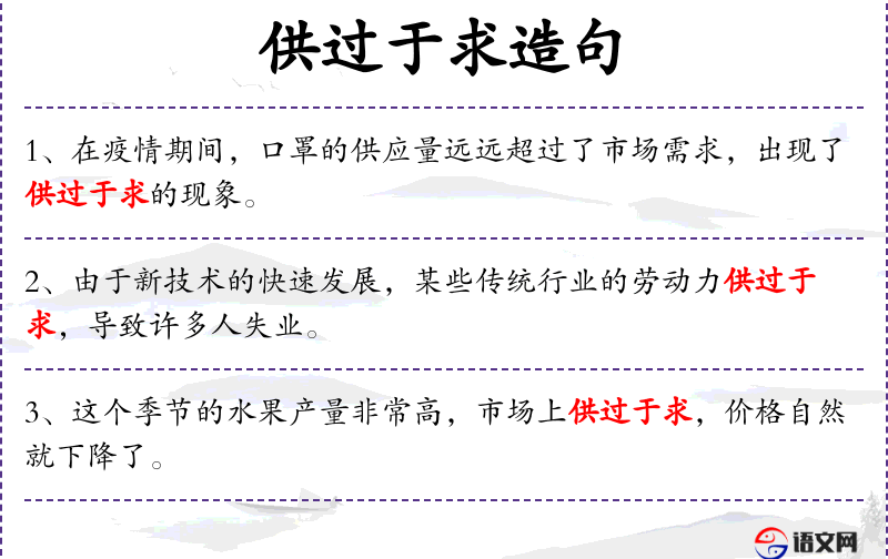 句子:“在疫情期间,口罩的供应量远远超过了市场需求,出现了供过于求的现象。”