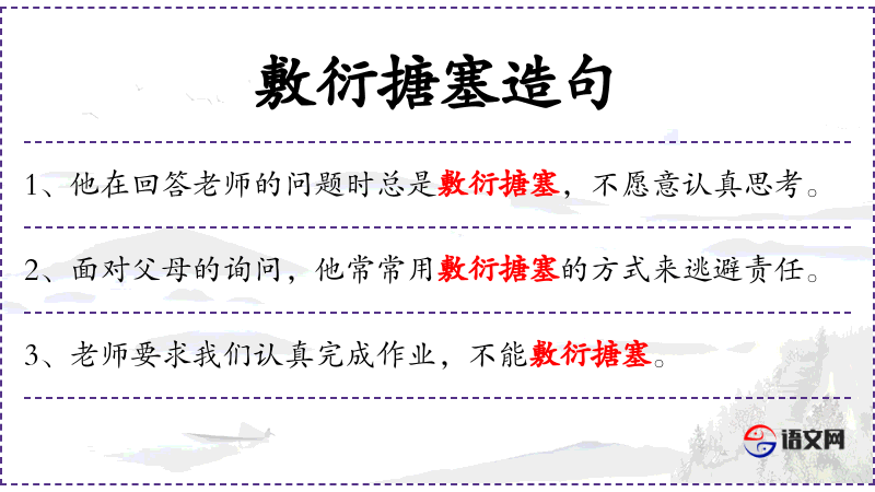 - 主语:“敷衍搪塞”是句子的主语,指的是一种不负责任、不认真的态度。