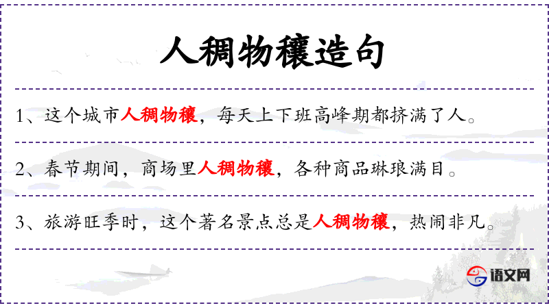 - 文化背景中,*人惯用形象的成语来描述场景,如“人山人海”和“人稠物穰”。