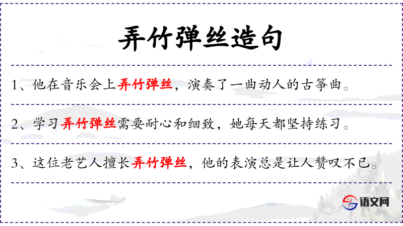 - 宾语:弄竹弹丝、表演