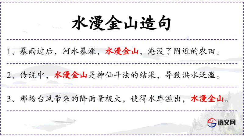 1. 【水漫金山】 - 神话故事。金山,在江苏省镇江市。