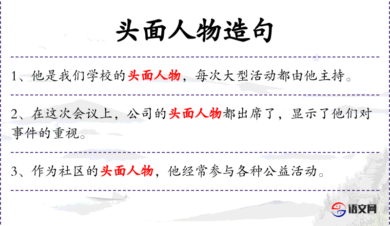- 头面人物:指在某个领域或社会中具有重要地位和影响力的人物。