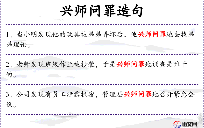 - 兴师问罪:指正式且严厉地质问或追究责任。