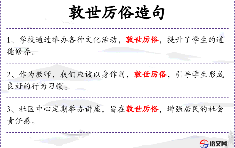 - 敦世厉俗:意为改善社会风气,提高道德标准。