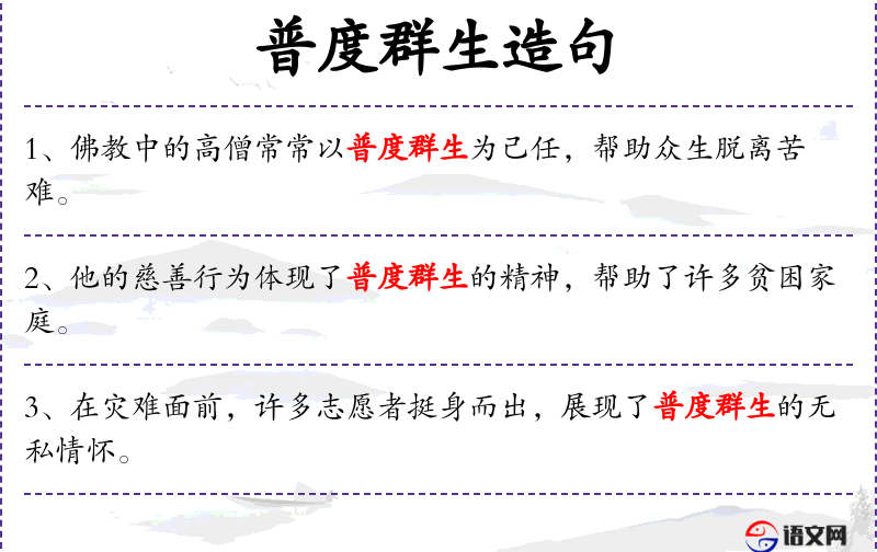 4. 【普度群生】 - 佛教语。指广济一切生死苦海中的众生。