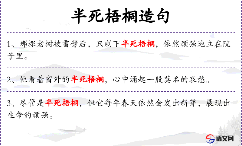 - 半死梧桐:形容梧桐树状态不佳,但仍有生命力。
