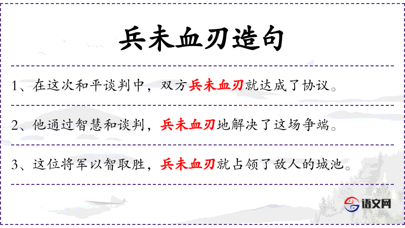 - 兵未血刃:这个成语源自**古代战争文化,强调智慧和策略胜过武力。