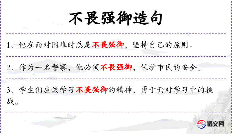 - 不畏强御:形容人勇敢,不惧怕强大的对手或困难。
