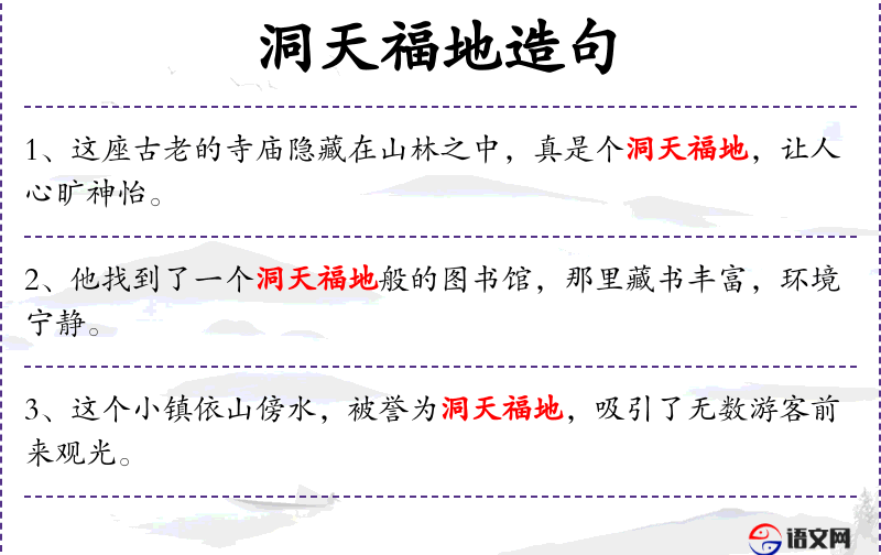 6. 【洞天福地】 原为道家语,指神道居住的名山胜地。后多比喻风景优美的地方。