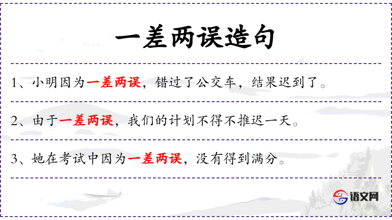 - 一差两误:指的是一些小错误或失误,通常用来形容计划或事情因为一些小问题而变得混乱或不顺利。