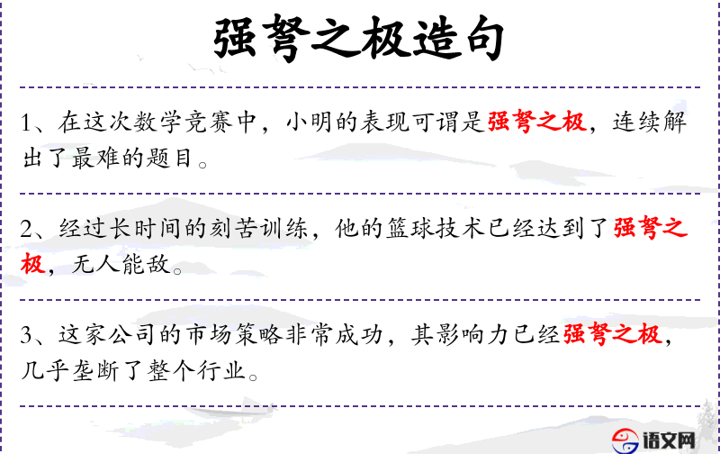 - 文化背景:在**文化中,“强弩之极”是一个比喻,用来形容技艺或力量达到了极限。