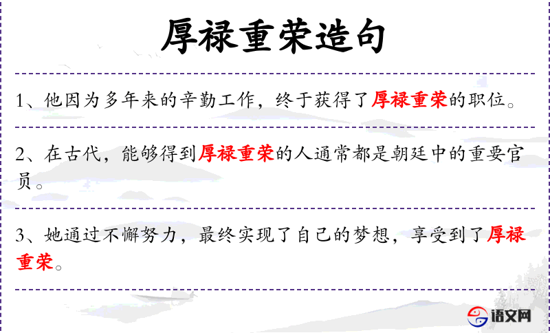 - 厚禄重荣:名词短语,指丰厚的俸禄和显赫的荣誉。