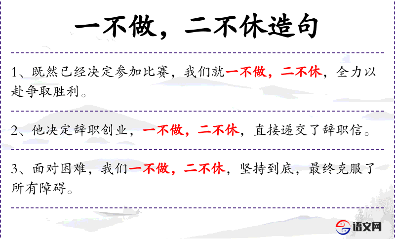 - 状语:一不做,二不休,每天坚持练*