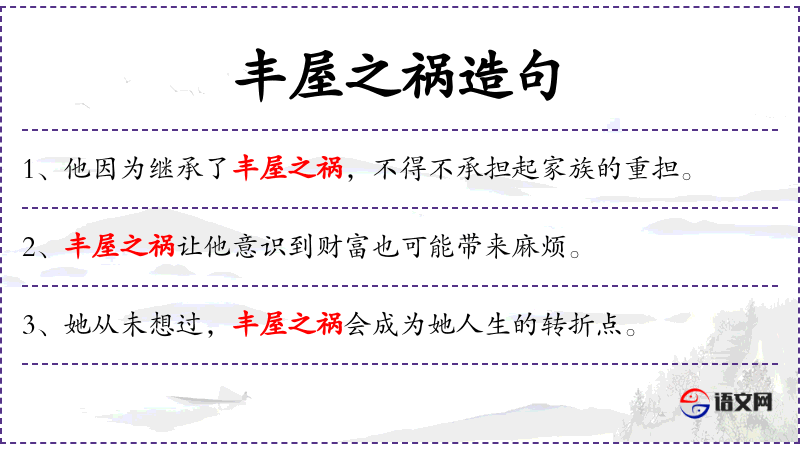 - 丰屋之祸:指某种灾难或不幸**,特别是对家庭或住所的破坏。