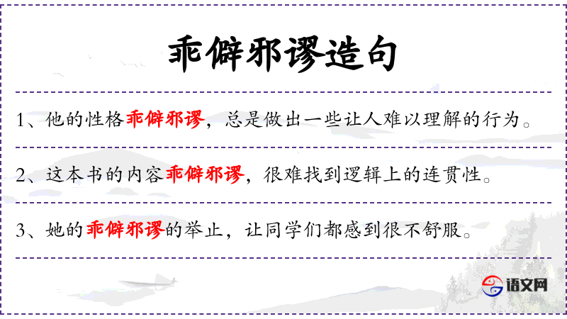 - 乖僻邪谬:形容词,意为古怪、不合常理、荒谬。