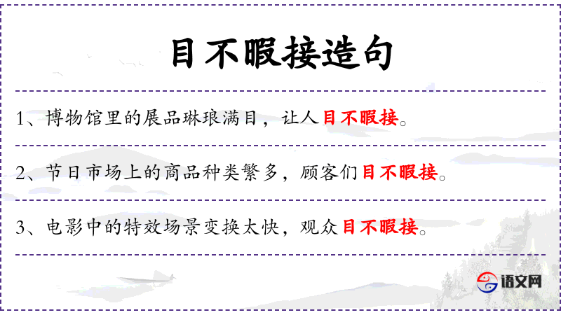 3. 【目不暇接】 - 指东西多,眼睛都看不过来。