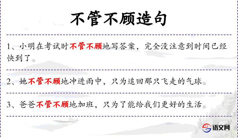- 不管不顾:形容词性短语,表示不顾一切,不考虑后果。